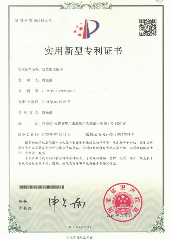 防盜螺絲扳手專利