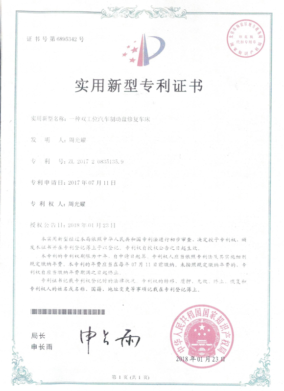 雙工位汽車制動(dòng)盤修復(fù)車床專利
