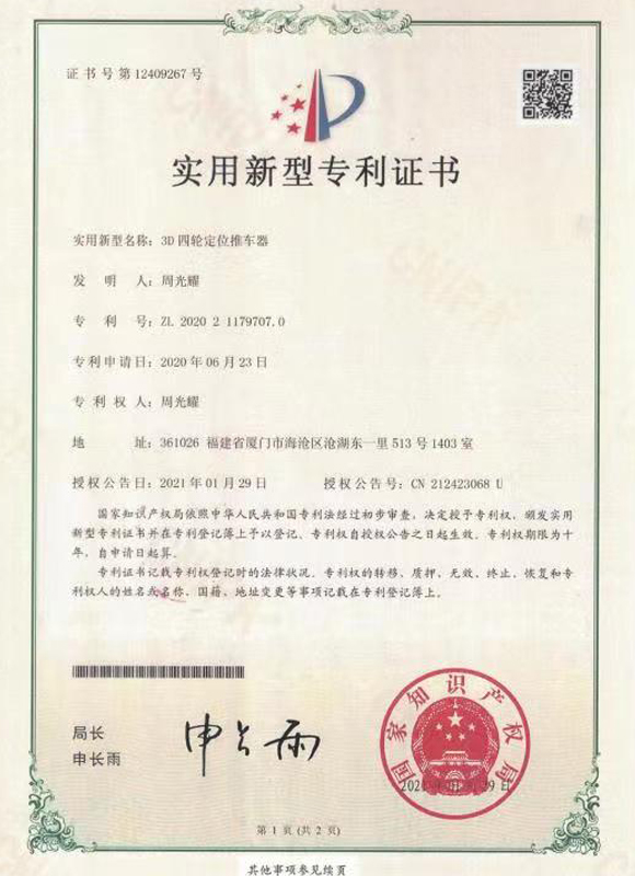 3D四輪定位省力推車器專利