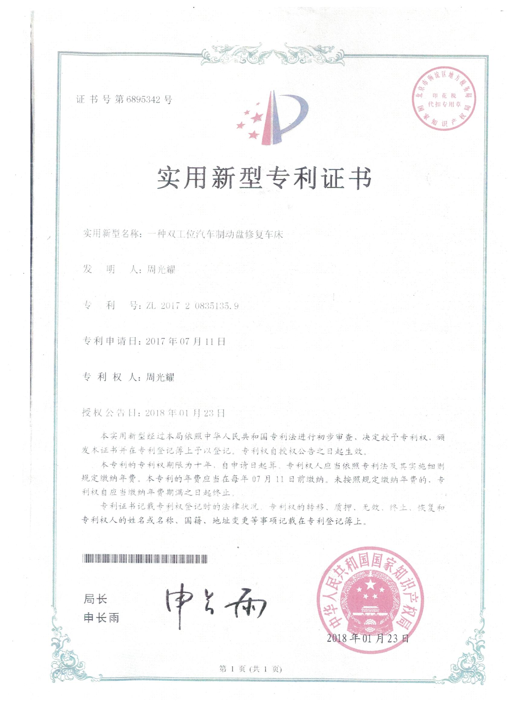 雙工位汽車(chē)制動(dòng)盤(pán)修復(fù)車(chē)床專(zhuān)利