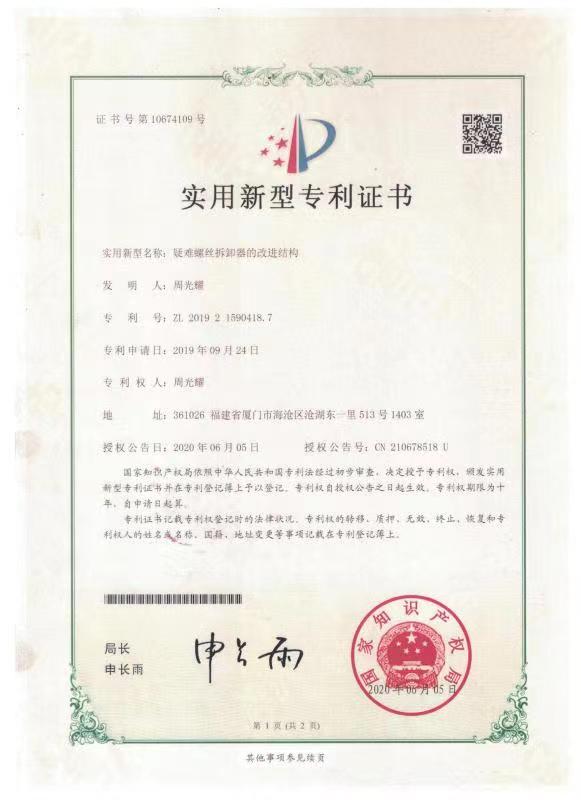 疑難螺絲拆缷器的改進(jìn)結(jié)構(gòu)專利